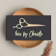 Cool customisable business card template with faux gold scissors icon. Perfect for beauty salon, hairstylist.
