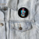 Button with an illustration of a humourous skeleton. Wearing a top hat, holding a drink. He has a big smile on his face. Cute and spooky fun for Halloween.
