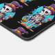 Desk mat with an illustration of a humourous skeleton. Wearing a top hat, holding a drink. He has a big smile on his face. Cute and spooky fun for Halloween.