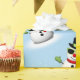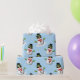 Cute festive winter birthday celebration blue winter snowman pattern wrapping paper for kids. Illustration of a cool snowman with green sunglasses and gloves, red scarf, and black top hat.