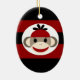 Cool Sock Monkey Beanie Hat Red Black Stripes Ceramic Tree Decoration
