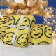 Cool Spilled Stained Happy Smiling faces on gold yellow.