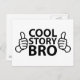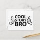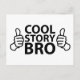 Cool Story Bro is one of the many hilarious and sarcastic internet memes. Using a thumbs up and bold black text, it adds humour and satire to the sarcastic joke.