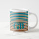 Cool Stripes Brown & Blue Monogrammed Large Coffee Mug