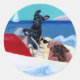 Whimsical and funny Labrador Summer Painting painted by Naomi Ochiai. Super Cool Labrador Retriever dogs are having fun with their motor boat in the sea. Yellow Labrador driver is as cool as ice!! Black Labrador is posing like a star!! And Chocolate Labrador is holding on for dear life. Nice for dog lovers who love Labradors. Beautiful Summer View with Labradors and Sea and a boat and a light house.