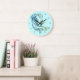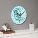 Cool Surfer Riding Teal Blue Ocean Waves Large Clock