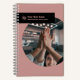 The Cool Team Image Hair Stylist Logo Motto Notebook, part of the Black Pink Hair Stylist Business Cards & Suite collection features a team photo on its cover along with a logo, company name and the salon tagline. On its back is a solid soft pink background with a black text field offering space for the website and a conveniently scannable QR code. Designed as a template to insert a square image, logo, company name, salon motto, QR code details and website address. Even the colours are modifiable.