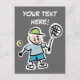 Cool tennis postcard with funny cartoon. Personlize your tennis gifts and cards for kids and adults. Create your own Birthday cards for children's party. Also nice for club coach, trainer, school, lessons etc. Fun cartoon with racket and ball.