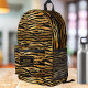 Super cool backpack featuring a jungle tiger stripe pattern and personalised name label. Add an extra bonus line of text - phone number, team name, saying, etc. - or delete. Roomy enough for books, computer, sports gear and more - or use as a travel or weekend bag too. Stylish and colourful, yet very functional - win, win.