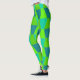 These leggings have a Bauhaus design of repeating trapezoids in shades of blue and green.