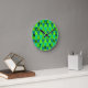 This wall clock has a Bauhaus design of repeating trapezoids in shades of blue and green.