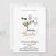 Cute baby shower invitation features swimming suit, hat, bag, sunglasses, flip flop, book and floral anchor. These bridal shower invitations are easily customised for your event by simply adding your details.
