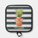 Cool Tropical Pineapple Navy Blue Stripes Pot Holder