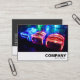 An attractive modern business card template with a photo or artwork on the front. Suitable for a variety of businesses. Company name on the front with name and contact details on the reverse. NB the photo can also be replaced with your own image. This template can therefore be easily adapted to many uses. Can look conventional or made to look more arty and less conventional. Great for bands and entertainers.