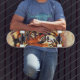 This design features a cool watercolor abstract painting of a tiger face with rich colours of orange, black, white, and brown. It makes a terrific gift and is sure to please your skateboard lover.