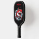 This cool pickleball paddle design features a watercolor shark head on a black background, with your name or monogram in bold red text for a look that is simple and stylish, yet trendy. It makes the perfect gift for Christmas, birthday, graduation, and more.