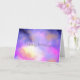 An elegant happy birthday greeting card with a nice combination of soft pastels and bright colours. A colourful abstract painting with a cosmic space image in pink, purple and yellow watercolors. The colours blend and mix together creating luminous ethereal clouds with little twinkling stars peppered throughout. The inside of the card has a decorative bunting banner and a customisable message.