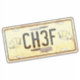 Cool sticker of an old weathered and rusted car licence number plate with the letters CH3F, with kitchen knives and chef hats. Perfect for budding home cooks, restaurant chefs and foodies