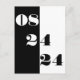 A budget option with great style. This postcard will impress your guests with your special wedding date. Typography and colour blocking puts the cool date front and centre. White and black and black on white. The reverse side includes all the essential details including a QR code. A dramatic save the date for any date with repeating numbers, such as 082424, or to call attention to an auspicious or especially meaningful date.