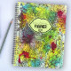 Unleash your creativity and stay organised with this stunning, customisable planner. The cover is a canvas of vibrant colours, featuring an intricate print of various flowers and abstract patterns. The watercolor style brings out the vivid hues of green, yellow, red, and purple, creating a mesmerising dance of colours. The centerpiece of the design is an oval label, customisable with your name and year, making it uniquely yours. The detailed line art in the background adds depth to the design, enhancing its artistic appeal.