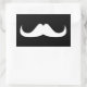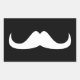 Cool White Handlebar moustache on Black Rectangular Sticker