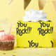 The wrapping paper features a vibrant yellow background with striking black script that exclaims "You Rock." Its modern brush typography adds a dynamic, artistic flair, creating a visually impactful and energetic look. The bold black script against the bright yellow backdrop gives it a hand-crafted, stylish feel that's both trendy and engaging. Ideal for celebrating someone special, this paper blends a cheerful message with a sleek, contemporary design. For a cohesive and vibrant theme, pair it with our rock music invitation, which complements the wrapping paper's energetic style and ensures a unified, exciting presentation for your event.