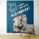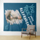 This vibrant navy blue background tapestry bursts with playful energy, featuring the bold "You Rock" in pastel blue brushstroke lettering, positioned in the top left corner. The "Happy Birthday" text, written in a fun, youthful white brush script, adds a joyful vibe nearby. In the centre, there's a customisable photo area framed within a playful brushstroke shape. You can personalise it with the birthday person’s photo, name, and date, making it unique and lively. It’s the perfect way to welcome guests to a birthday celebration, creating a festive atmosphere with fun, colour, and personal touches!