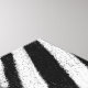 A cool black and white zebra pattern. Alternating stripes of black and white. From an up close macro photo of a zebras side. A trendy abstract design. The words zebra safari are printed on the bottom on a transparent white border.