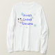 I love this shirt. I had written to the artist asking her if this picture was available on a shirt, and she wrote me back telling me where I could find the shirt. These shirts can be custom made to have a different saying. I loved this saying and went with it. The artist wrote me back later to tell me that she had seen my order go through. How's that for service? Pretty special. It's just as displayed. Perfect!
