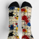 Step into creativity with this coordinated set of paint splatter socks, featuring two unique abstract designs that blend dynamic splashes of red, blue, yellow, and black with geometric grid patterns. Each sock offers a distinct yet complementary look, creating a bold and artistic statement. Perfect for trendsetters and art lovers, this set brings an innovative twist to your wardrobe, making every step a showcase of modern creativity.