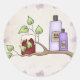 The sticker is made on wonderful paper and had no problem sticking to the bag that I purchased to put it on. I wanted to find a design that would be cute for the bride and groom and this one fit the bill as it has cute "bees" buzzing around and the wedding was taking place in a town called "Bee Cave". The packaging was great and protected the stickers. The website is easy to navigate and there are so many color choices. I had no problem finding a color that the bride was using on everything else selected. The design was adorable and there were many to choose from. You can make the figure as larger or smaller and you can place the photo and writting whereever you want to in the sticker. The printing is fabulous..better than expected.