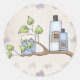 The sticker is made on wonderful paper and had no problem sticking to the bag that I purchased to put it on. I wanted to find a design that would be cute for the bride and groom and this one fit the bill as it has cute "bees" buzzing around and the wedding was taking place in a town called "Bee Cave". The packaging was great and protected the stickers. The website is easy to navigate and there are so many color choices. I had no problem finding a color that the bride was using on everything else selected. The design was adorable and there were many to choose from. You can make the figure as larger or smaller and you can place the photo and writting whereever you want to in the sticker. The printing is fabulous..better than expected.