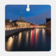 Night photograph of Christiansborg Slot and parts of Børsbygningen. At the coast of Slotholmens Kanal. Copenhagen, Denmark.