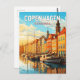 Copenhagen retro vector travel design. Copenhagen, Denmark’s capital, sits on the coastal islands of Zealand and Amager. It’s linked to Malmo in southern Sweden by the Öresund Bridge.