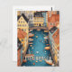 This postcard offers a lovely illustration representing the beautiful canals and unique architecture of Copenhagen, Denmark. It is a great postcard for travelers to the capital city of Denmark: Copenhagen.