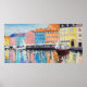 Copenhagen in a shining day, colorful buildings an poster