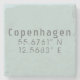 Copenhagen Denmark latitude and longitude map coordinates in modern urban font