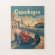 A captivating vintage design featuring Copenhagen, Denmark, with its iconic landmarks and a classic racing car. The artwork elegantly merges the city's historic architecture, such as Nyhavn and Amalienborg Palace, with the sleek lines and nostalgic charm of a retro racing car. This composition captures the dynamic spirit and cultural richness of Copenhagen, juxtaposing its urban sophistication against a backdrop of scenic beauty and maritime allure.