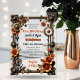 Unique wedding invitations with a gold and copper metal steampunk theme. Rustic vintage metal gears and flowers with a gold, copper border this transparent acrylic wedding invitation.