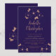 Sophisticated and modern, copper metallic floral design on midnight blue background wedding invitation.