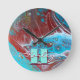 Copper and Teal Acrylic Flow Art Round Clock
