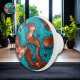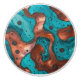 Vibrant abstract composition featuring a blend of rich copper patina tones with swirling patterns of turquoise.