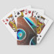 Abstract digital art on these playing cards suggests a 3D glossy surface of hammered copper with holes drilled down to an azure blue plane of existence... Or something like that. Let your mind wander...