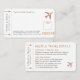 Trendy industrial copper and grey aeroplane ticket boarding pass place card or escort card with a custom message with shuttle or taxi information on the back, a fun place card display at a destination wedding or aviation travel theme reception for the globetrotter couple having an adventure theme wedding.
