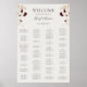 This copper burgundy wildflower | beige alphabetical seating chart is perfect for your classic rustic boho rust, white, marsala wedding reception. Design features a bohemian wreath or bouquet of modern watercolor purple, red, grey, and blush pink wildflowers along with burnt orange and gold greenery. Featured in the design are poppies and barley. The design is ideal for a simple, minimal fall or autumn summer, spring country garden wedding. Please find other matching or coordinating wedding stationery in the rest of this collection.