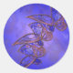 A flutter of sapphire, copper, and white fractals in the shape of butterflies dance across a royal blue background, overlaid with copper framing and sparkling bright blue gems.