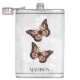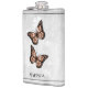 Enjoy your favourite alcoholic beverages anytime with a Copper Butterfly Floral Vinyl Wrapped Flask. Flask design features a pair of vibrant butterflies resting on a white floral vine against a light grey grunge background. Additional gift items available with this design as well.