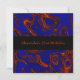Copper Orange Red Fractal Abstract with Black Trims on Electric Blue Birthday Party Event Celebration Invitation. Customise for any event.