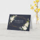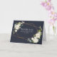 Modern, elegant and trendy, this photo wedding thank you card design features a faux copper geometric embellished with watercolor white floral and eucalyptus greenery floral arrangements, over a modern navy blue texture. Your message of thanks is personalised inside, and the top inside flap allows you to add your favourite wedding photo. Part of a matching wedding set. Copyright Elegant Invites. All rights reserved.