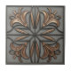 This exquisite tile design features a striking Art Nouveau-inspired medallion with beautifully stylized lilies and sweeping organic forms. The rich, burnished copper tones of the flowers and flowing elements contrast elegantly with a cool, muted grey background, creating a sophisticated and timeless look. The intricate details and metallic finish evoke classic metalwork and period elegance, making this tile an ideal accent for a luxurious bathroom, an antique-inspired kitchen, or a refined decorative panel. Search ID1193 to see other designs in this series. Note: design adapted from generative content.